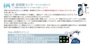 人工関節手術支援ロボット”Mako”を導入致しました